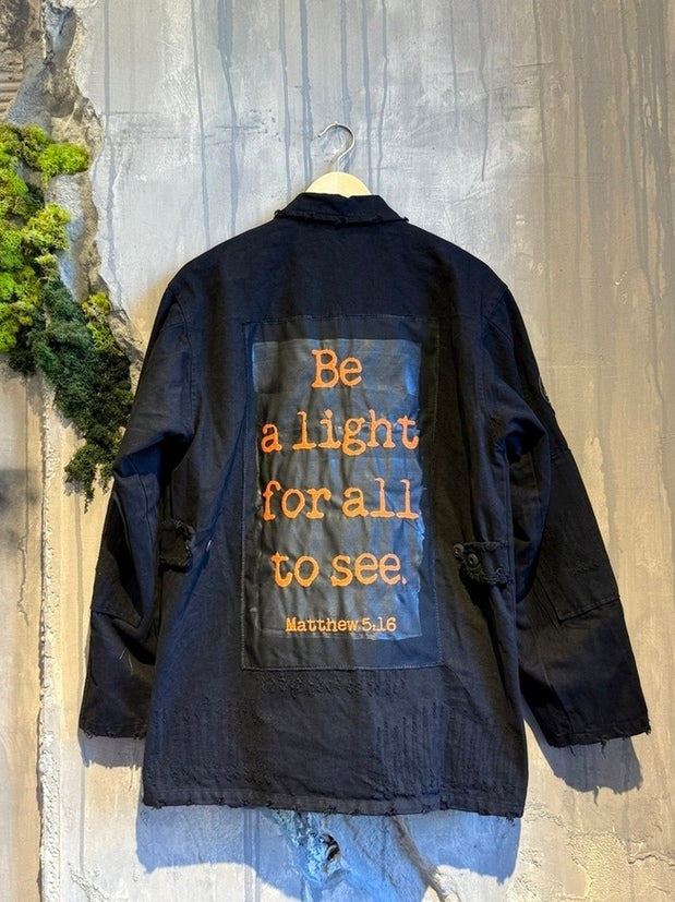 A handmade denim jacket with multiple treatments. Acid wash, distressed jean fabric, embroidered patches, handpaintings, and statement labels are creating a high level jacket that we truly need in our wardrobe!