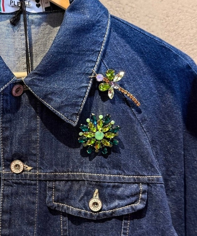 Η καρφίτσα Flower με χρυσή βάση και συνδυασμό από πράσινες πέτρες swarovski αποπνέει φρεσκάδα και κομψότητα. Ένα ιδιαίτερο αξεσουάρ που φωτίζει κάθε εμφάνιση, προσθέτοντας φυσική ομορφιά και εκλεπτυσμένο στυλ. Ιδανική για όσους αγαπούν τις λεπτομέρειες που κάνουν τη διαφορά.