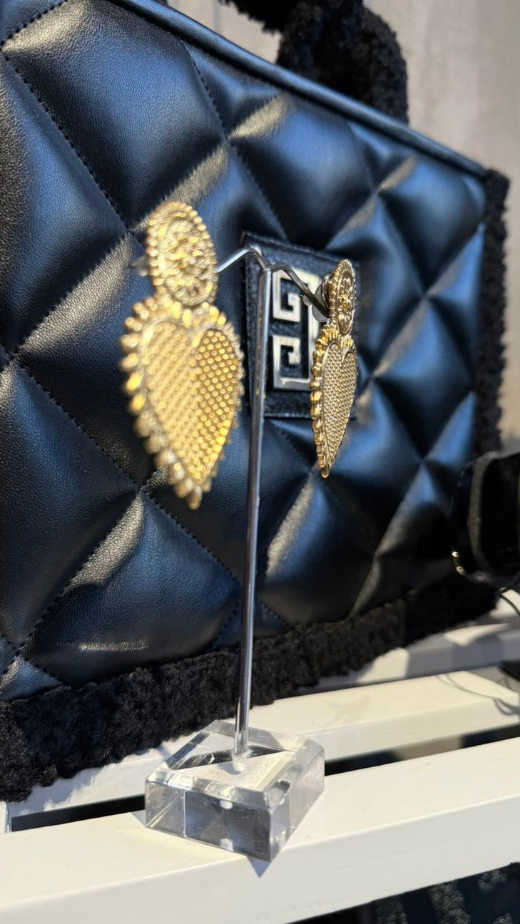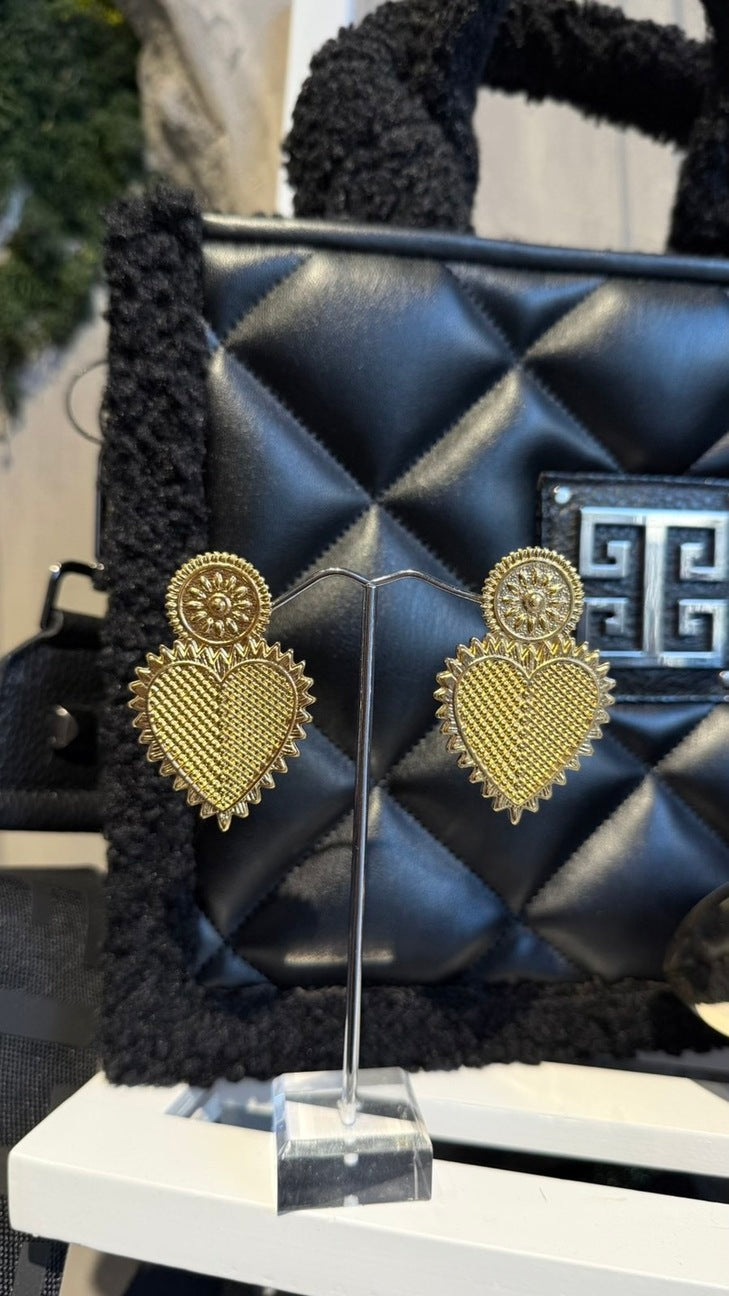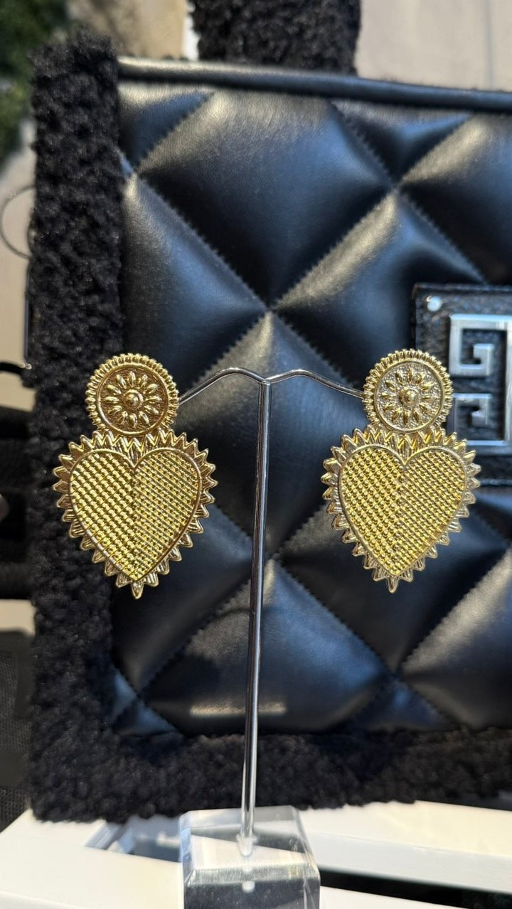 Κρεμαστά σκουλαρίκια καρφωτά σε σχήμα χρυσή καρδιά με ανάγλυφη υφή.