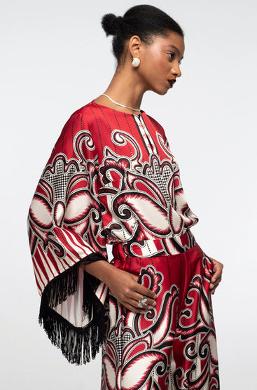 - ¾ καμπάνα μανίκια με κρόσσια στα τελειώματα