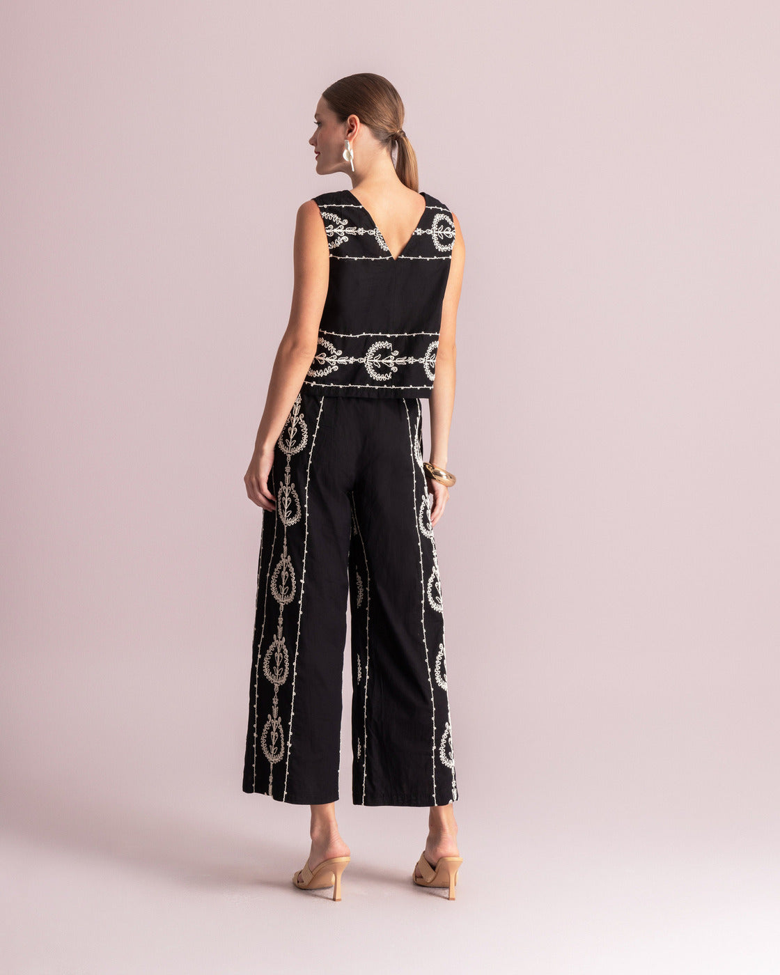 Το Arora Set συνδυάζει διαχρονική κομψότητα με ιδιαίτερη υφή, χάρη στο εντυπωσιακό κέντημα που διακοσμεί το ύφασμα. Η αντίθεση του μαύρου με το εκρού δημιουργεί ένα κομψό και εκλεπτυσμένο αποτέλεσμα. Ένα σύνολο που αποπνέει άνεση και στυλ για καλοκαιρινές εμφανίσεις με χαρακτήρα.