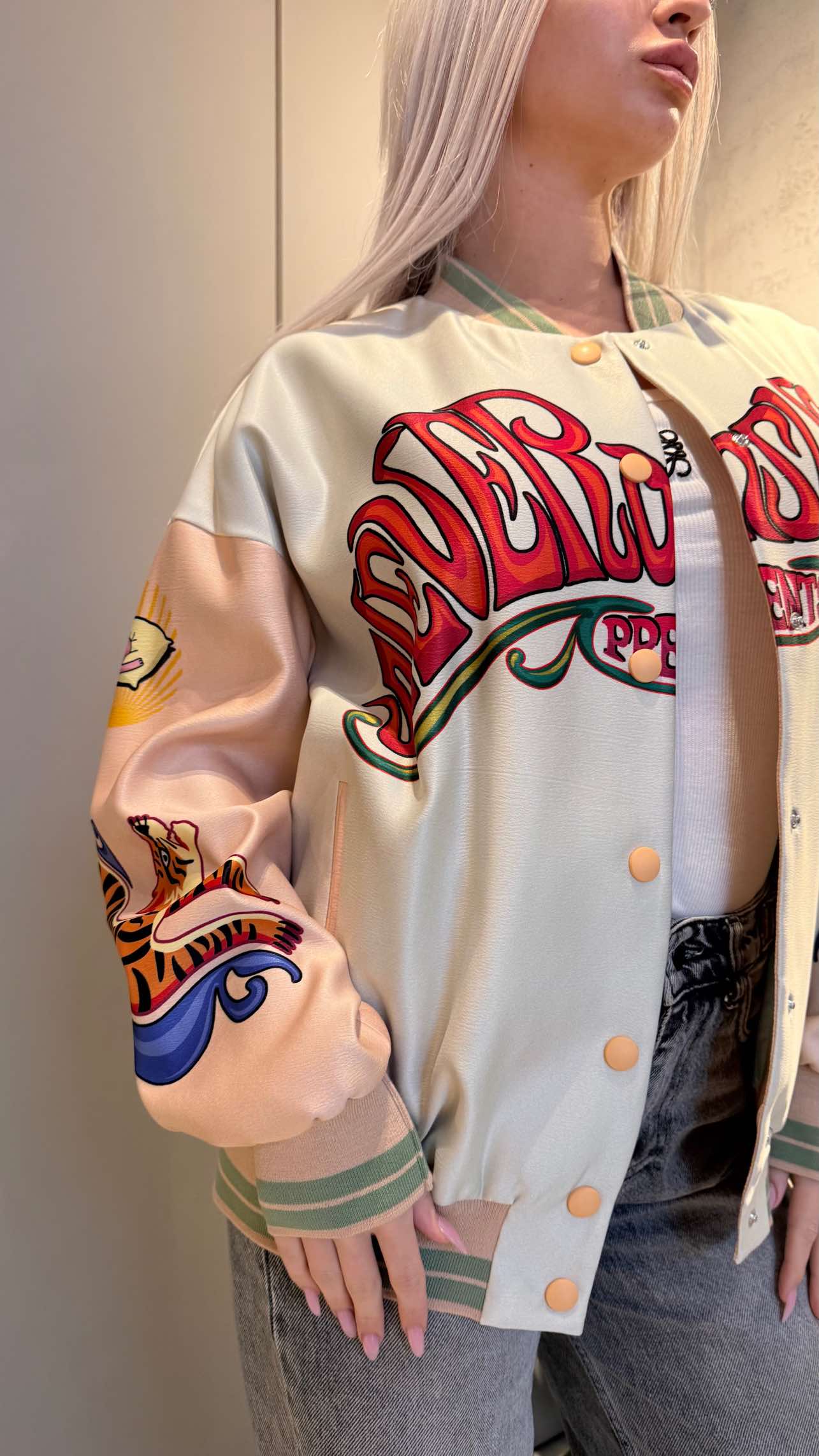 Δυναμικό, ζωηρό και γεμάτο ενέργεια το καπιτονέ σατέν Candis Long Jacket Beige. Αυτό το bomber jacket με παιχνιδιάρικα τυπωμένα χρώματα και streetwear διάθεση είναι η ιδανική επιλογή για άνετο, νεανικό στυλ που τραβάει τα βλέμματα και σε κρατάει ζεστή το χειμώνα.
