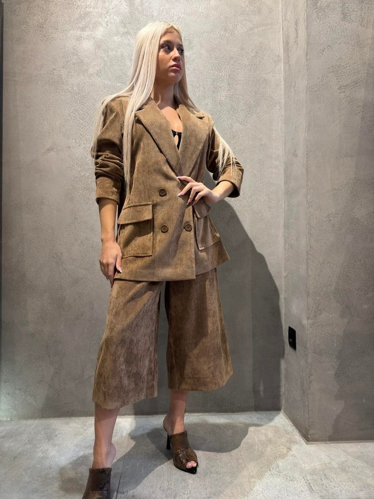 Το Cassidy Set αποπνέει κομψότητα με το απαλό κοτλέ του. Το σακάκι και η άνετη βερμούδα δημιουργούν ένα μοντέρνο, χαλαρό look που ξεχωρίζει με την απλότητά του. Ιδανικό για effortless εμφανίσεις με σύγχρονο attitude.