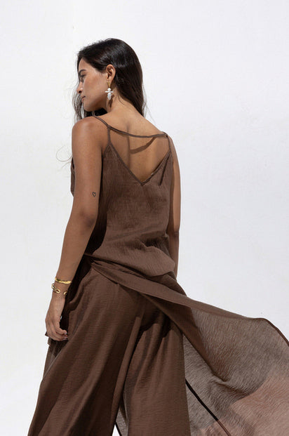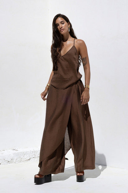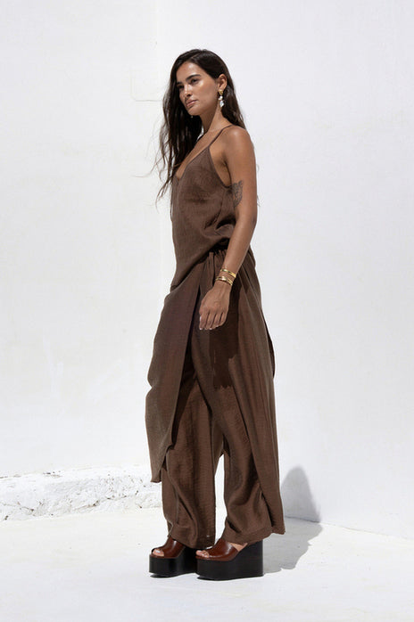 Το Cielo Set σε απολαυστική chocolate απόχρωση είναι η επιτομή της κομψής άνεσης που θα σε συνοδεύσει από το πρωί έως το βράδυ. Θηλυκό, αέρινο και διαχρονικό, αγκαλιάζει το σώμα με φυσική κίνηση και εκλεπτυσμένο χαρακτήρα. Μπορεί να συνδυαστεί από πάνω και το CIELO SHIRT DRESS για μια πιο ολοκληρωμένη εμφάνιση.