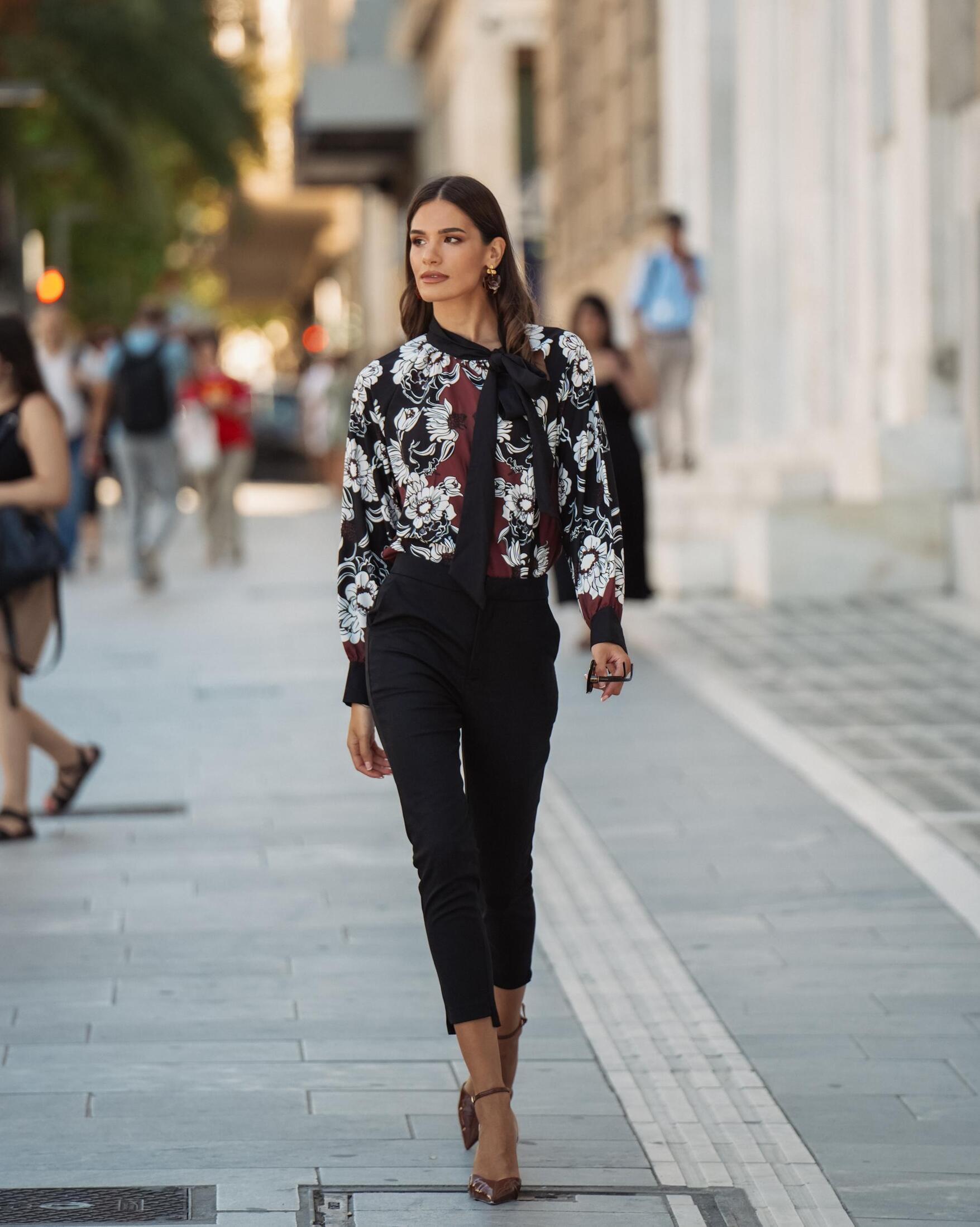 Το Dark Chocolate Shirt ξεχωρίζει με το καφέ-μαύρο φόντο και το λευκό floral print, χαρίζοντας διαχρονική αισθητική. Η φαρδιά γραμμή, ο γιακάς με neck tie και τα κουμπιά στο μπροστινό μέρος δημιουργούν relaxed αλλά στιλάτη σιλουέτα. Φτιαγμένο από λεπτό, σταθερό ύφασμα για άνεση και effortless chic.