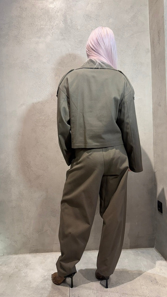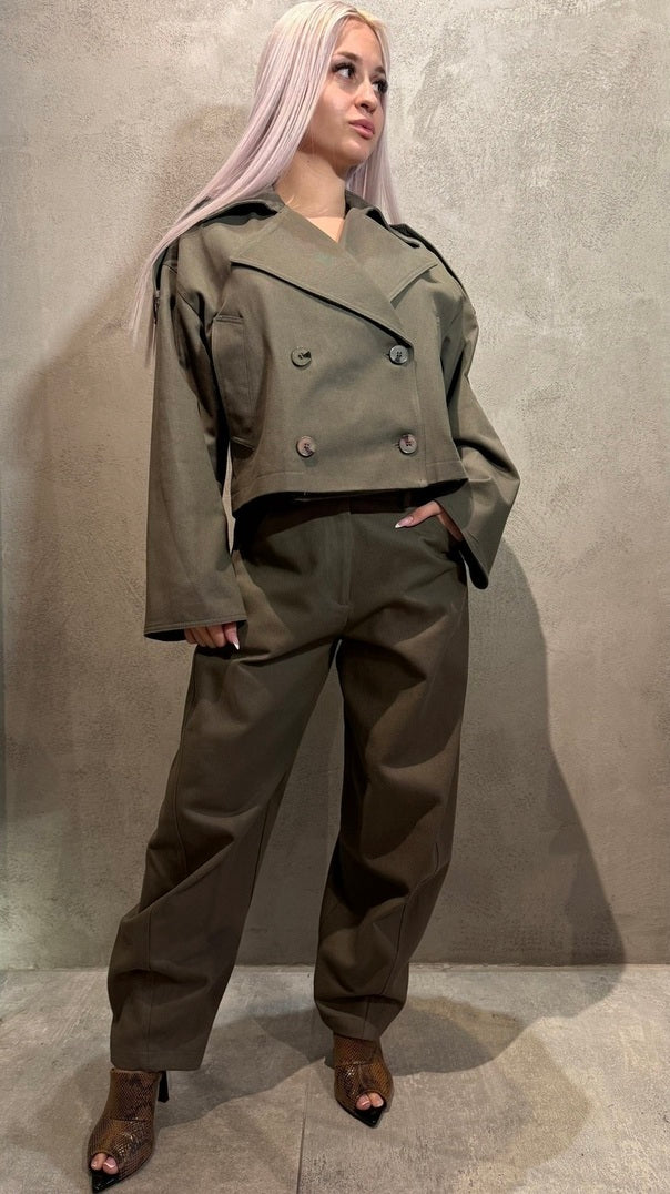 Το Desere Set είναι ο ορισμός της effortless κομψότητας με edgy street διάθεση. Το cropped σακάκι με πέτο γιακά και διπλό κουμπί κλέβει τις εντυπώσεις. Το μακρύ παντελόνι με λάστιχο πίσω και πλαϊνές τσέπες ολοκληρώνει το σύνολο, προσφέροντας στιβαρή εφαρμογή από σταθερό βαμβάκι για looks που ξεχωρίζουν κάθε στιγμή της μέρας.