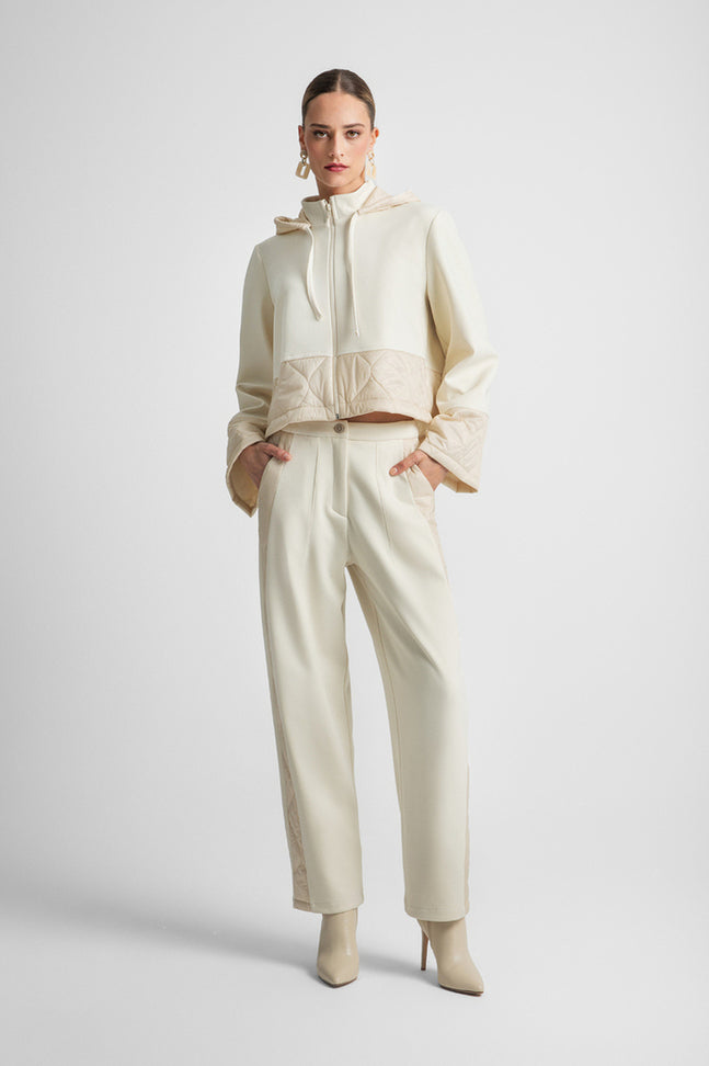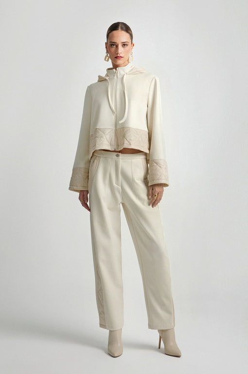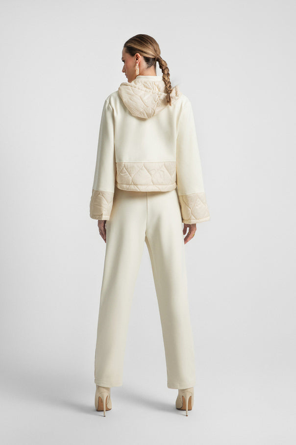 Το Jennifer Set φέρνει street vibes με cropped top και κουκούλα, ενώ οι καπιτονέ λεπτομέρειες ανεβάζουν το στυλ. Το μακρύ παντελόνι με πλαϊνές καπιτονέ ρίγες το κάνουν το απόλυτο set για κάθε casual εμφάνιση με attitude.