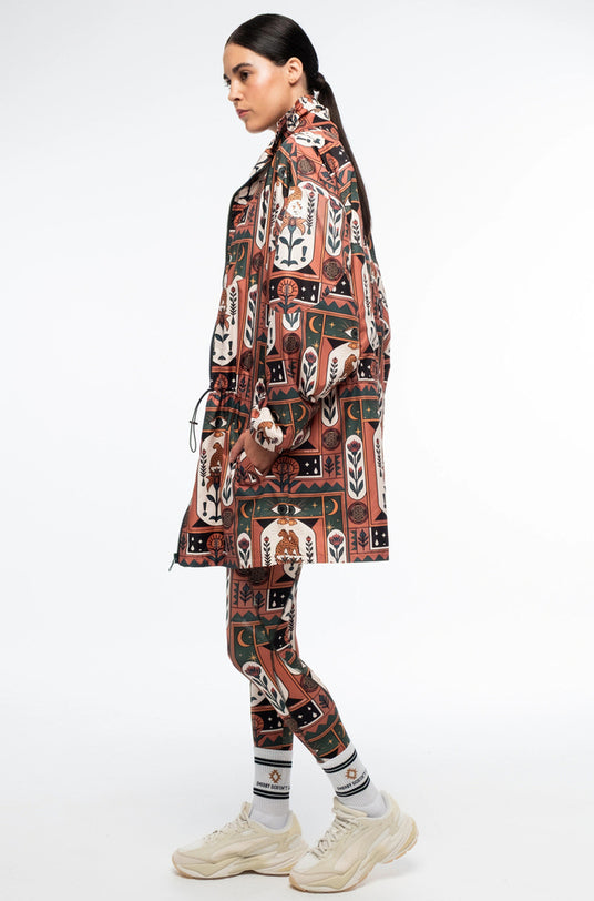 Το Mystic Bloom Training Jacket είναι το ιδανικό κομμάτι για να ολοκληρώσετε το sporty look σας, συνδυάζοντας άνεση και στυλ. Ο ψηλός λαιμός με κορδόνι, οι ελαστικές μανσέτες και η ρυθμιζόμενη μέση δίνουν σχήμα στη φαρδιά ζακέτα, ενώ οι welt τσέπες, η πλήρης επένδυση και το χοντρό φερμουάρ εξασφαλίζουν πρακτικότητα. Το all-over print με λουλούδια και αρχαία σύμβολα μαζί με το λογότυπο Chaka από βινύλιο προσθέτουν ξεχωριστό χαρακτήρα. Ολοκλήρωσε το look με τα υπόλοιπα της σειράς Mystic Bloom