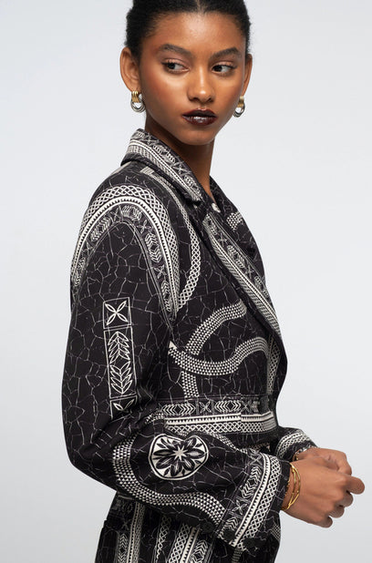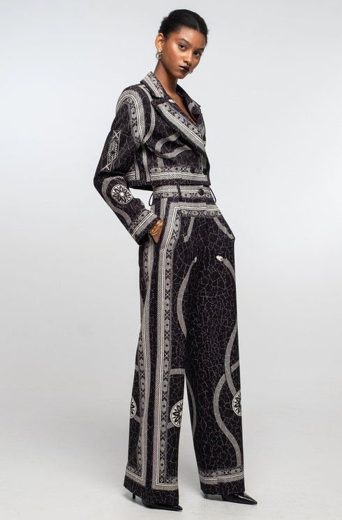 Το Philosophy Set παίζει με τις αναλογίες και χαρίζει ξεχωριστό χαρακτήρα σε κάθε εμφάνιση, συνδυάζοντας τη δομημένη κομψότητα με τη σύγχρονη αισθητική. Πρόκειται για ένα εκλεπτυσμένο σύνολο με κοντό σακάκι και φαρδύ, ίσιο παντελόνι, που ισορροπεί αρμονικά ανάμεσα στα θηλυκά και τα ανδρικά στοιχεία.