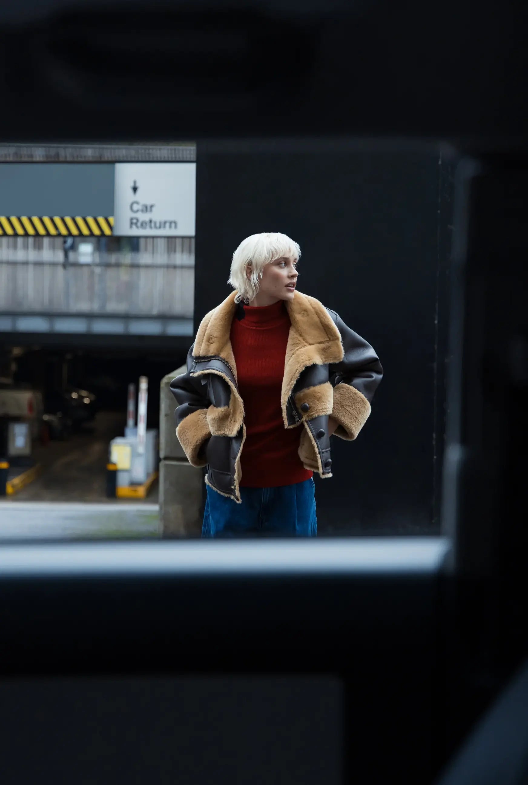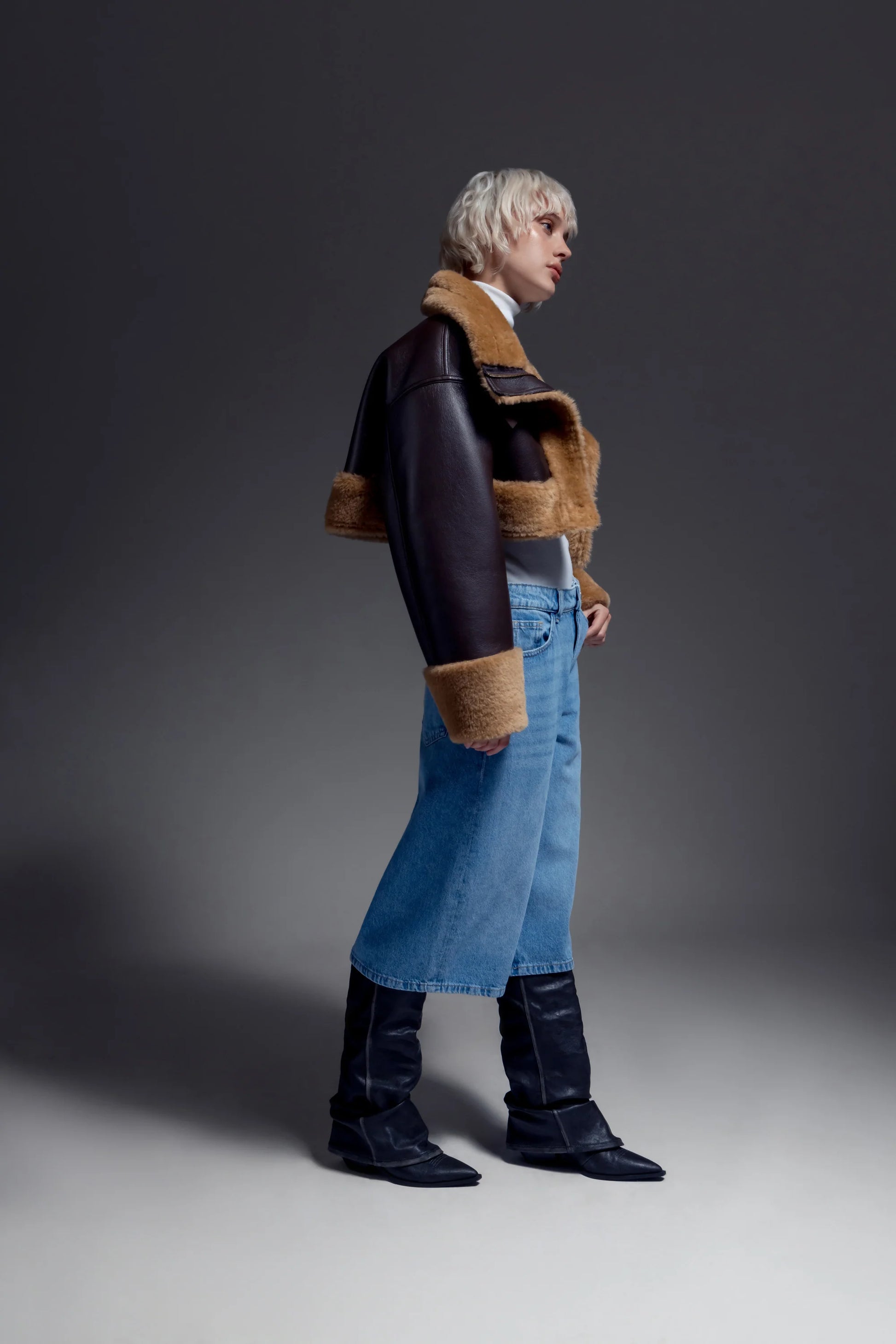 - Φερμουάρ στη μέση που κονταίνει το τζάκετ