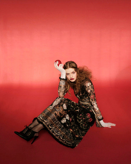 Το Temptation Long Dress ξεχωρίζει με το εντυπωσιακό σχέδιο του και τις διαφορετικές υφές του. Έχει A-line γραμμή και printed δαντέλα, ενώ φοριέται πάνω από ένα μαύρο slip dress από μαλακό ελαστικό jersey ύφασμα. Τα μακριά μανίκια και το τελείωμα του, έχουν μαύρη δαντέλα, ενώ η ζώνη του μπορεί να δεθεί στη μέση ή και στο λαιμό σαν φουλάρι, δίνοντας επιπλέον στυλ.