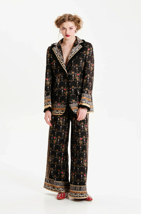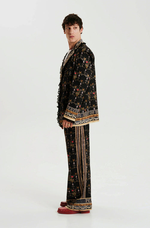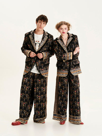 Το σακάκι είναι διακοσμημένο με μαύρη δαντέλα στον γιακά, τις μανσέτες, το τελείωμα και τις τσέπες. Μπορεί να φορεθεί άνετα και από τα δύο φύλα που έχουν την τόλμη να ξεχωρίζουν.